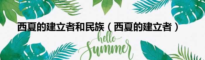 大家好,今天小六子来为大家解答以下的问题,关于西夏的建立者和民族,西夏的建立者这个很多人还不知道,现在让我们一起来看看吧!