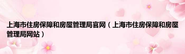 上海市住房保障和房屋管理局官网(上海市住房保障和房屋管理局网站)