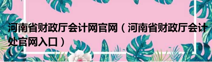 河南省财政厅会计网官网(河南省财政厅会计处官网入口)