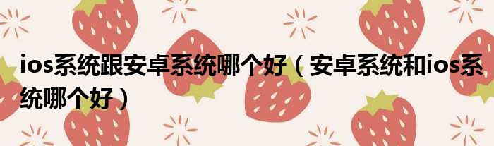 ios系统跟安卓系统哪个好(安卓系统和ios系统哪个好)
