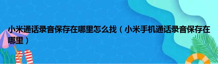 小米通话录音保存在哪里怎么找(小米手机通话录音保存在哪里)