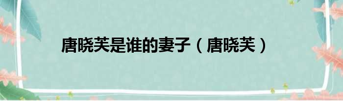 大家好,今天小六子来为大家解答以下的问题,关于唐晓芙是谁的妻子,唐晓芙这个很多人还不知道,现在让我们一起来看看吧!
