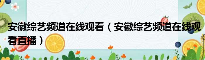 安徽综艺频道在线观看(安徽综艺频道在线观看直播)