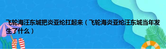 飞轮海汪东城把炎亚纶扛起来(飞轮海炎亚纶汪东城当年发生了什么)