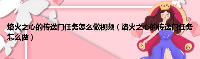 熔火之心的传送门任务怎么做视频(熔火之心的传送门任务怎么做)