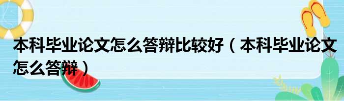 本科毕业论文怎么答辩比较好(本科毕业论文怎么答辩)