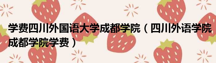 学费四川外国语大学成都学院(四川外语学院成都学院学费)