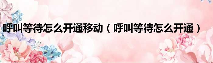 呼叫等待怎么开通移动(呼叫等待怎么开通)
