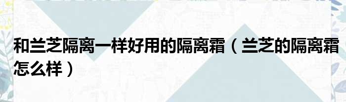 导读 大家好,今天小六子来为大家解答以下的问题,关于和兰芝隔离一样好用的隔离霜,兰芝的隔离霜怎么样这个很多人还不知道,现在让我们一起来看