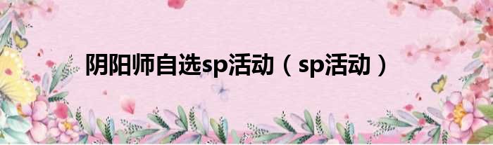 大家好,今天小六子来为大家解答以下的问题,关于阴阳师自选sp活动,sp活动这个很多人还不知道,现在让我们一起来看看吧!