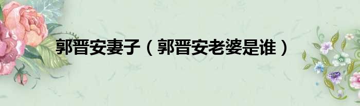 大家好,今天小六子来为大家解答以下的问题,关于郭晋安妻子,郭晋安老婆是谁这个很多人还不知道,现在让我们一起来看看吧!