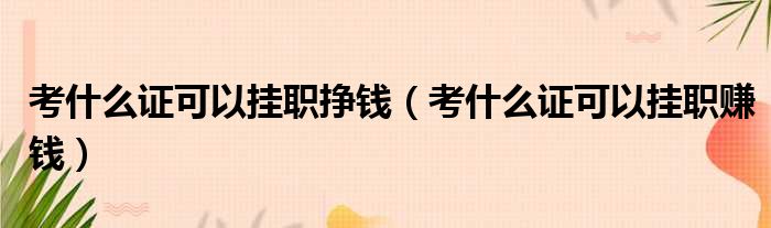 考什么证可以挂职挣钱(考什么证可以挂职赚钱)