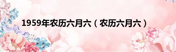 大家好,今天小六子来为大家解答以下的问题,关于1959年农历六月六,农历六月六这个很多人还不知道,现在让我们一起来看看吧!