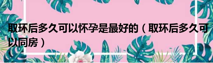 取环后多久可以怀孕是最好的(取环后多久可以同房)