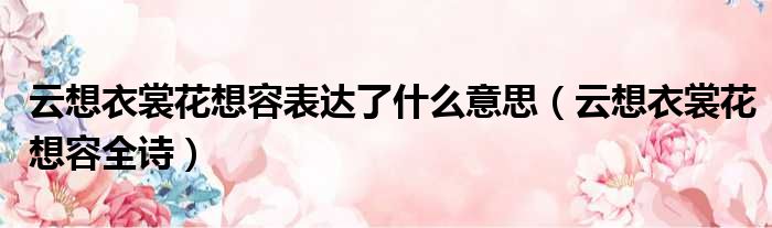 导读 大家好,今天小六子来为大家解答以下的问题,关于云想衣裳花想容表达了什么意思,云想衣裳花想容全诗这个很多人还不知道,现在让我们一起来