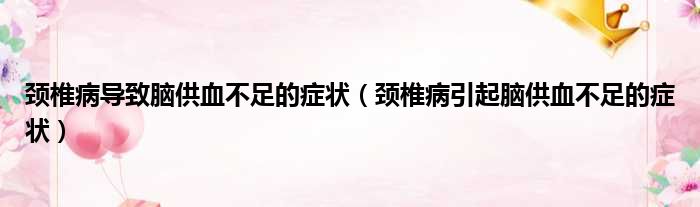 颈椎病导致脑供血不足的症状(颈椎病引起脑供血不足的症状)