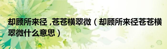 导读 大家好,今天小六子来为大家解答以下的问题,关于却顾所来径 ,苍苍横翠微,却顾所来径苍苍横翠微什么意思这个很多人还不知道,现在让我们一