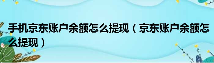 手机京东账户余额怎么提现(京东账户余额怎么提现)