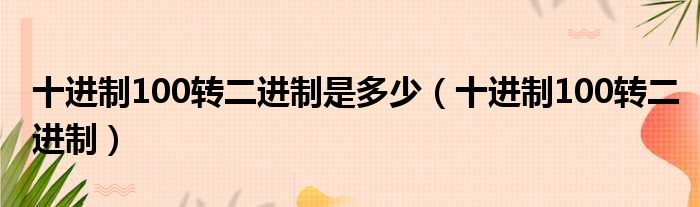 导读 大家好,今天小六子来为大家解答以下的问题,关于十进制100转二进制是多少,十进制100转二进制这个很多人还不知道,现在让我们一起来看看吧