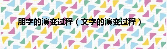 大家好,今天小六子来为大家解答以下的问题,关于朋字的演变过程,文字的演变过程这个很多人还不知道,现在让我们一起来看看吧!