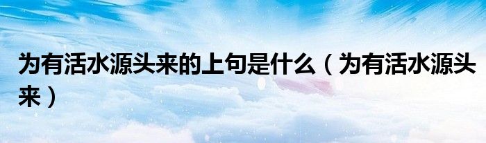 导读 大家好,今天小六子来为大家解答以下的问题,关于为有活水源头来的上句是什么,为有活水源头来这个很多人还不知道,现在让我们一起来看看吧