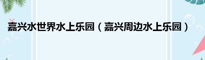 嘉兴水世界水上乐园(嘉兴周边水上乐园)