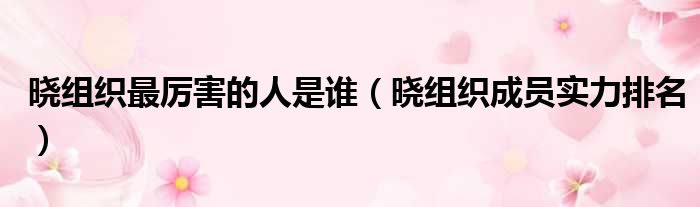 导读 大家好,今天小六子来为大家解答以下的问题,关于晓组织最厉害的人是谁,晓组织成员实力排名这个很多人还不知道,现在让我们一起来看看吧!1