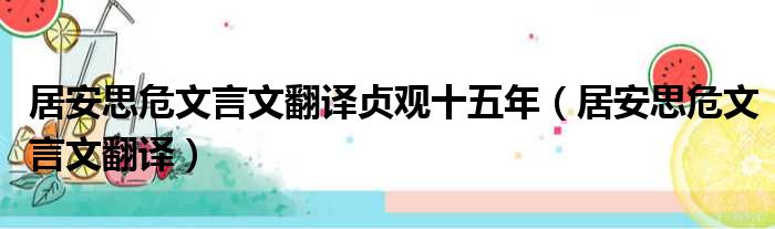 居安思危文言文翻译贞观十五年(居安思危文言文翻译)