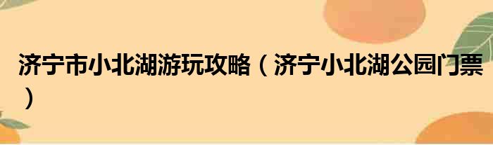 导读 大家好,今天小六子来为大家解答以下的问题,关于济宁市小北湖游玩攻略,济宁小北湖公园门票这个很多人还不知道,现在让我们一起来看看吧!1