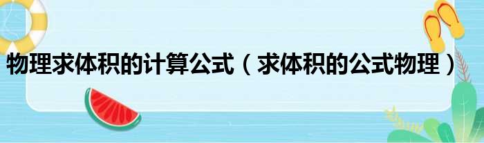 导读 大家好,今天小六子来为大家解答以下的问题,关于物理求体积的计算公式,求体积的公式物理这个很多人还不知道,现在让我们一起来看看吧!1、