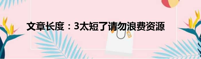 大家好,今天小六子来为大家解答以下的问题,关于文章长度:3太短了请勿浪费资源这个很多人还不知道,现在让我们一起来看看吧!