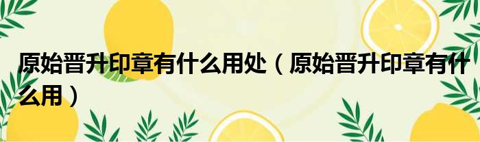 原始晋升印章有什么用处(原始晋升印章有什么用)