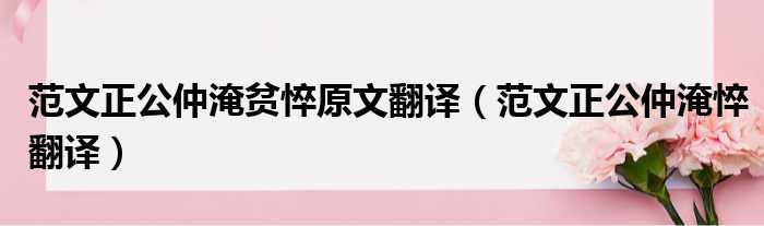 范文正公仲淹贫悴原文翻译(范文正公仲淹悴翻译)