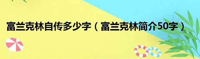 导读 大家好,今天小六子来为大家解答以下的问题,关于富兰克林自传多少字,富兰克林简介50字这个很多人还不知道,现在让我们一起来看看吧!1、本