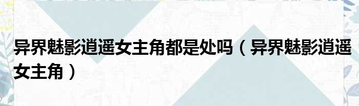 异界魅影逍遥女主角都是处吗(异界魅影逍遥女主角)