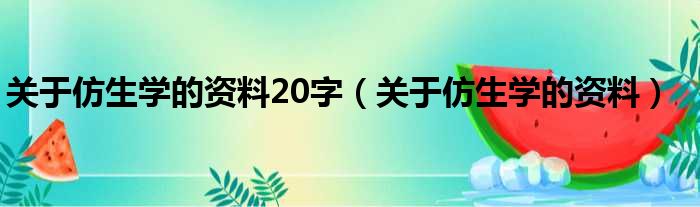 大家好,今天小六子来为大家解答以下的问题,关于关于仿生学的资料20字,关于仿生学的资料这个很多人还不知道,现在让我们一起来看看吧!