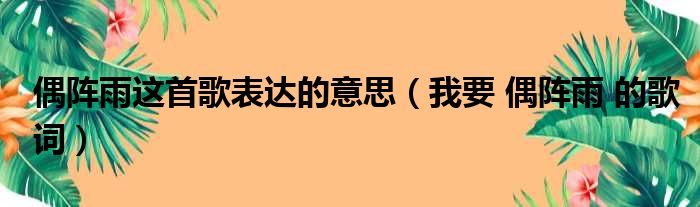 导读 大家好,今天小六子来为大家解答以下的问题,关于偶阵雨这首歌表达的意思,我要 偶阵雨 的歌词这个很多人还不知道,现在让我们一起来看看