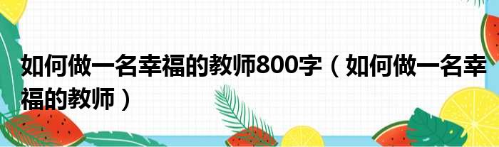 如何做一名幸福的教师800字(如何做一名幸福的教师)