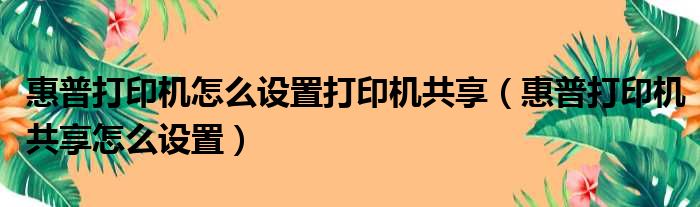 惠普打印机怎么设置打印机共享(惠普打印机共享怎么设置)