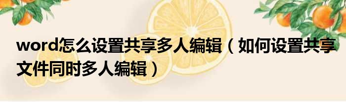 word怎么设置共享多人编辑(如何设置共享文件同时多人编辑)