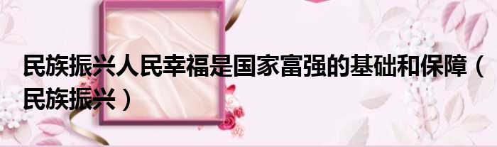 民族振兴人民幸福是国家富强的基础和保障(民族振兴)