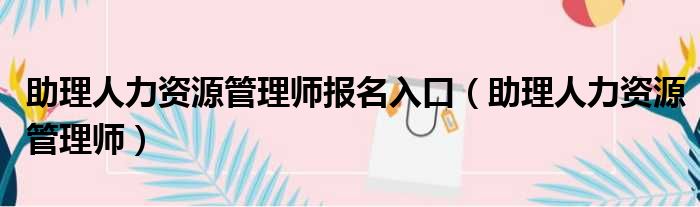 助理人力资源管理师报名入口(助理人力资源管理师)