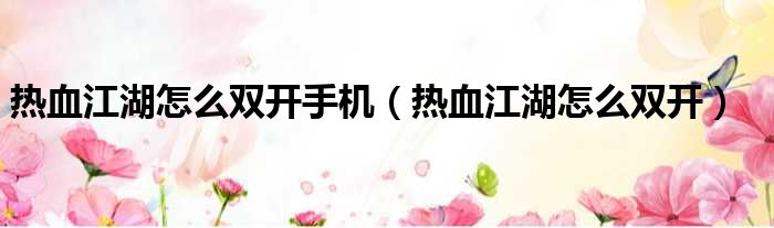 热血江湖怎么双开手机(热血江湖怎么双开)