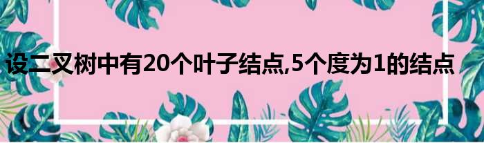 导读 大家好,今天小六子来为大家解答以下的问题,关于设二叉树中有20个叶子结点,5个度为1的结点这个很多人还不知道,现在让我们一起来看看吧!1