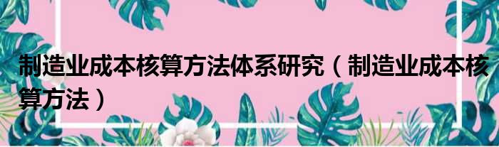 制造业成本核算方法体系研究(制造业成本核算方法)