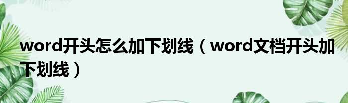 导读 大家好,今天小六子来为大家解答以下的问题,关于word开头怎么加下划线,word文档开头加下划线这个很多人还不知道,现在让我们一起来看看吧