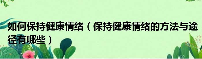 如何保持健康情绪(保持健康情绪的方法与途径有哪些)
