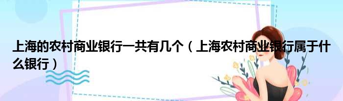 上海的农村商业银行一共有几个(上海农村商业银行属于什么银行)