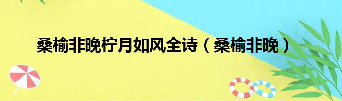 大家好,今天小六子来为大家解答以下的问题,关于桑榆非晚柠月如风全诗,桑榆非晚这个很多人还不知道,现在让我们一起来看看吧!