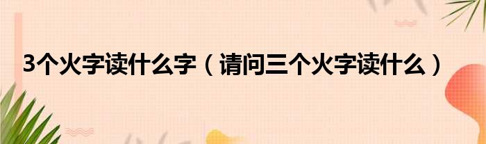 导读 大家好,今天小六子来为大家解答以下的问题,关于3个火字读什么字,请问三个火字读什么这个很多人还不知道,现在让我们一起来看看吧!1、我